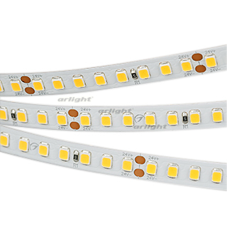 Светодиодная высокоэффективная лента RT серии A160. Светодиоды SMD 2835, 160 шт/м, белая плата шириной 8 мм, скотч 3M. Цвет ТЕПЛЫЙ 2700K, высокая световая эффективность 150 лм/Вт, индекс цветопередачи CRI>85, угол 120°. Питание 24 В, мощность 12 Вт/м (60 Вт на 5 м). Размеры 5000x8x1.5 мм. Мин. отрезок 50 мм, 8 светодиодов. Цена за 1 м. Кратность заказа поставщику: 5 м.