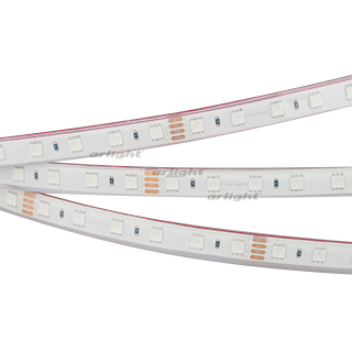 Мультицветная светодиодная герметичная лента RTW серии B60, IP68 (силикон PFS - силиконовая экструзия). Светодиоды SMD 5060, 60 шт/м, белая плата шириной 10 мм, скотч 3M. Цвет RGB, угол 120°. Питание 24 В, мощность 14.4 Вт/м (72 Вт на 5 м). Размеры 5000x13x5.5 мм. Мин. отрезок 100 мм, 6 светодиодов. Цена за 1 м. Кратность заказа поставщику: 5 м.