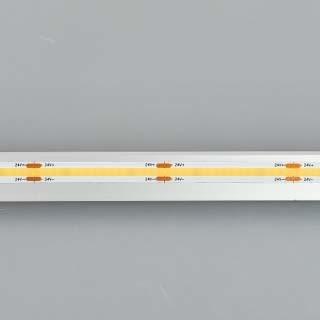 Светодиодная лента сплошного свечения COB серии X320. Светодиоды CSP, 320 шт/м, белая плата шириной 8 мм, скотч 3M. Цвет ТЕПЛЫЙ 2700K, индекс цветопередачи CRI>90, угол 175°. Питание 24 В, мощность 8 Вт/м (40 Вт на 5 м). Размеры 5000х8х2 мм. Мин. отрезок 50 мм. Цена за 1 м. Кратность заказа поставщику: 5 м.