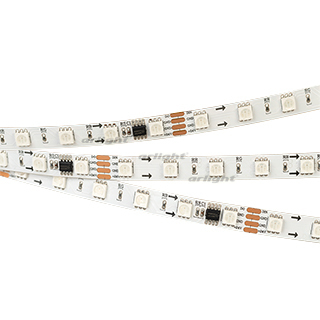 Гибкая открытая лента Бегущие огни (IP20) с драйвером 16703, встроенный в ленту контроллер с циклическим автозапуском 300 программ (Auto mode) и подкл-ем внеш. контроллера. Длина 5м, 300шт LED RGB 5060, 10 pixel/m (1 pixel = 6 LED). Питание 24V, ном. мощн. 10 Вт/м, макс. мощн-ть 13,2 Вт/м (статический белый цвет). Ширина 10 мм. Негерметичные прямоугольные коннекторы. Кратность заказа поставщику: 5 м.