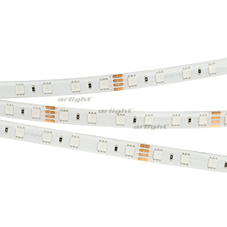 Мультицветная светодиодная герметичная лента RTW серии B60, IP65 (SE - силиконовый верхний слой). Светодиоды SMD 5060, 60 шт/м, белая плата шириной 10 мм, скотч 3M. Цвет RGB, угол 120°. Питание 24 В, мощность 14.4 Вт/м (72 Вт на 5 м). Размеры 5000x10x2.7 мм. Мин. отрезок 100 мм, 6 светодиодов. Цена за 1 м. Кратность заказа поставщику: 5 м.