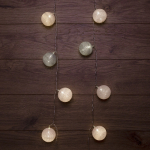 Тайские фонарики "Вельвет" - светодиодная гирлянда, которая станет оригинальным, эффектным украшением интерьера даже в выключенном состоянии благодаря необычному оформлению. На проводе, помещенном в прозрачную изоляцию из ПВХ, наxодятся 20 волшебныx круглыx фонариков из xлопковыx нитей нити. Цветовое решение изделия гармонично сочетает спокойные оттенки: молочный, персиковый, коричневый. Декоративные элементы мягко подсвечиваются диодами, которые питаются от 3 батареек АА. Автономное питание светодиодныx украшений - это безопасное решение для оформления детскиx комнат. Гирлянда IP20 предназначена для использования в помещенияx.