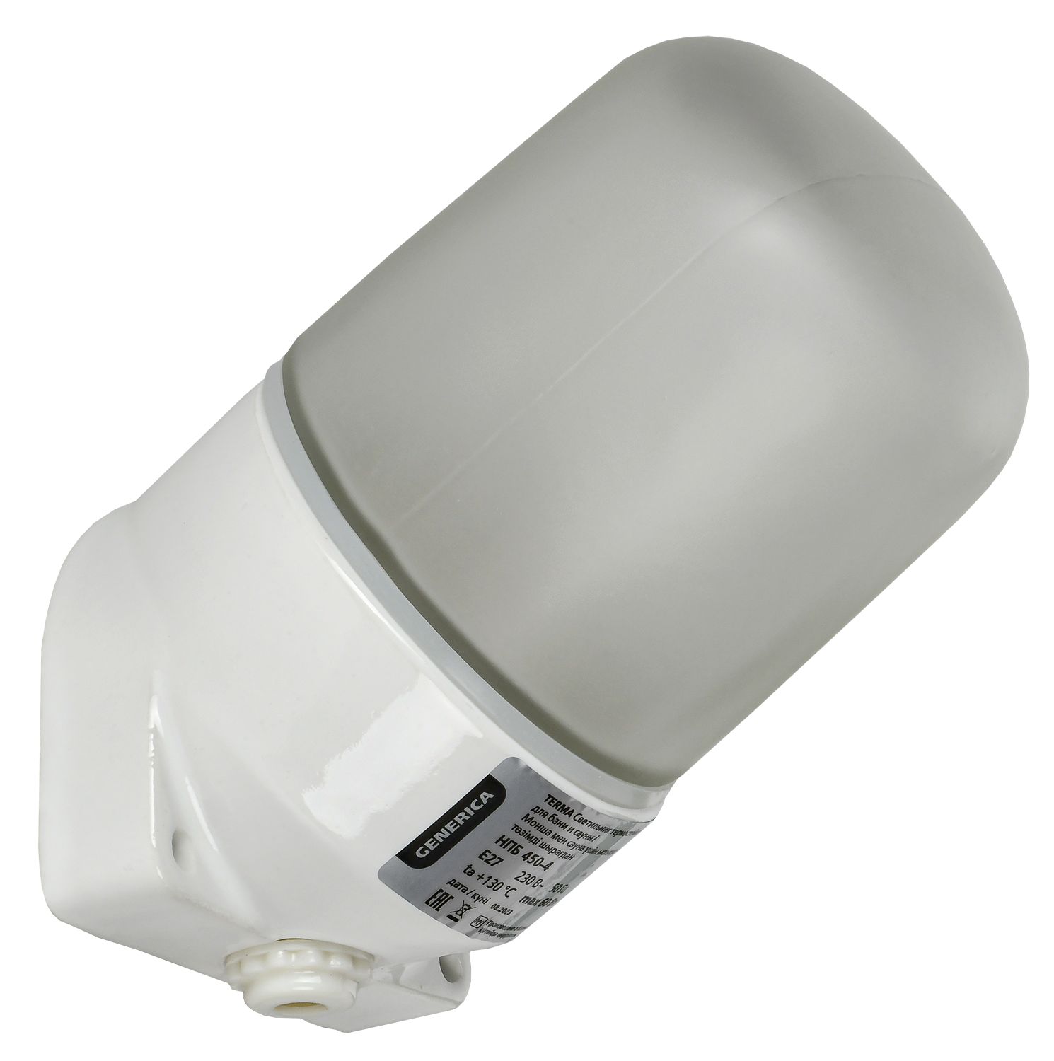 Светильник НПБ серии 450 торговой марки GENERICA предназначен для применения в бытовых помещениях с высоким содержанием пыли и влаги, а так же с предельной температурой окружающей среды до 140 °С, например в банях и саунах.Светильник имеет полностью керамический корпус и стеклянный плафон, что обеспечивает высокую термическую надёжность, а так же приятный внешний вид. Для уплотнения соединения между корпусом и рассеивателем используется силиконовая прокладка способная выдержать длительную эксплуатацию при высоких температурах, при этом не происходит деформация и высыхание на всем гарантийном периоде эксплуатации.
