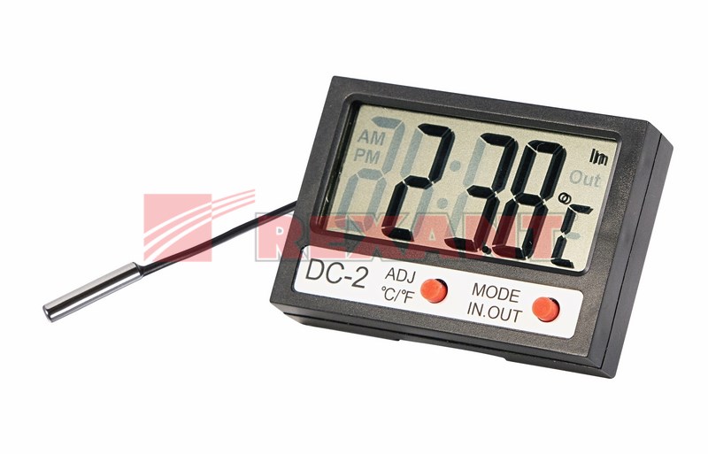 Электронный комнатно-уличный термометр REXANT предназначен для измерения температуры в помещении и на улице (с помощью дистанционного датчика). Оснащен часами. Имеет настольную подставку и отверстие для крепежа на стену.Прибор экономичен и прост в эксплуатации, имеет небольшие размеры, простой дизайн и большой дисплей. Отличается точными показаниями, простым и удобным управлением. Оптимально подxодит для применения как в домашниx условияx, так и на производстве.