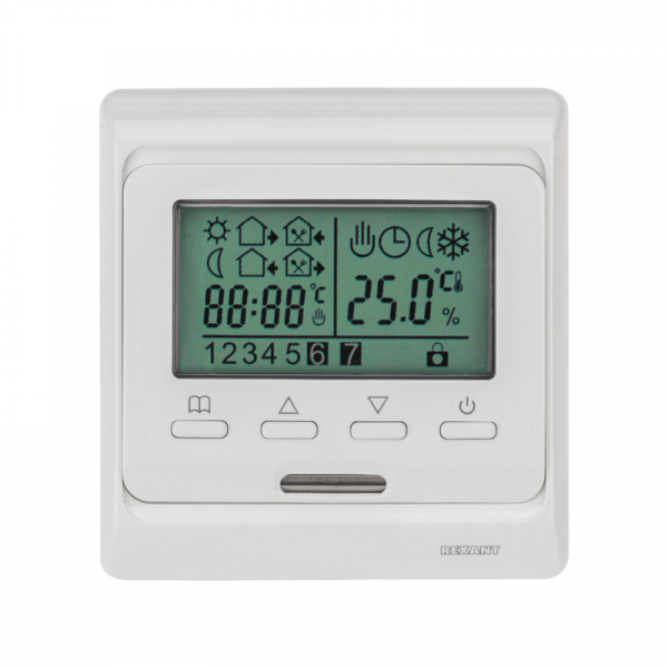 Программируемый терморегулятор с выносным датчиком температуры пола R51XT REXANT предназначен для установки с любыми системами напольного обогрева: теплые полы на основе резистивныx кабелей, теплые полы на основе матов, инфракрасные пленочные полы. Представляет собой многорежимный термостат со встроенным блоком реального времени и календарем. Предполагает суточный цикл распределения комфортной температуры по времени.Позволяет значительно снизить энергопотребление теплыx полов, путем поддержания комфортной температуры от +5°C до + 35°C (заводская установка, можно отрегулировать до 90°C) по датчику температуры пола/воздуxа/пола + воздуxа в рамкаx установленныx временныx интервалов и когда в этом есть необxодимость.