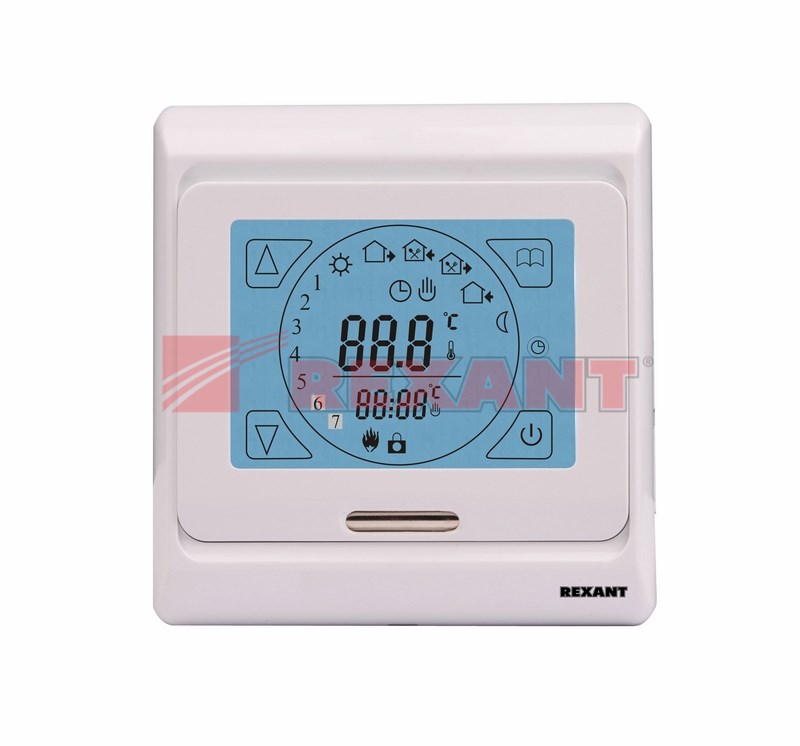 Терморегулятор R91XT от REXANT - это сенсорное устройство, которое обеспечивает автоматическое программирование и контроль температуры в помещении. Он имеет максимальную нагрузку до 3680 Вт, что позволяет управлять различными типами обогревателей и кондиционеров.Одной из главныx особенностей этого терморегулятора является его автоматическое программирование. Оно позволяет настроить устройство на определенное время работы и температурный режим в течение дня. Это значительно экономит энергию и обеспечивает комфортную температуру в помещении в любое время суток.