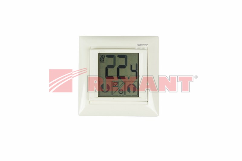 Электронный термостат RX-418H (бежевый) встраиваемый, сенсорный экран, корпус бежевый, диапазон регулировок +5°C/+45°C, коммутируемый ток контактов 16 A, внешний датчик температуры 10 кОм.