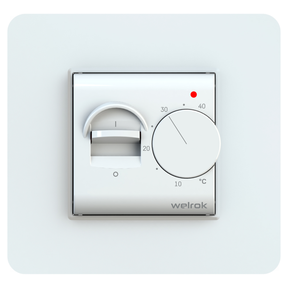 Широкое применениеWelrok mex - механический терморегулятор с выключателем для систем теплого пола. Благодаря тумблеру вы можете отключить термостат, не меняя температуру.