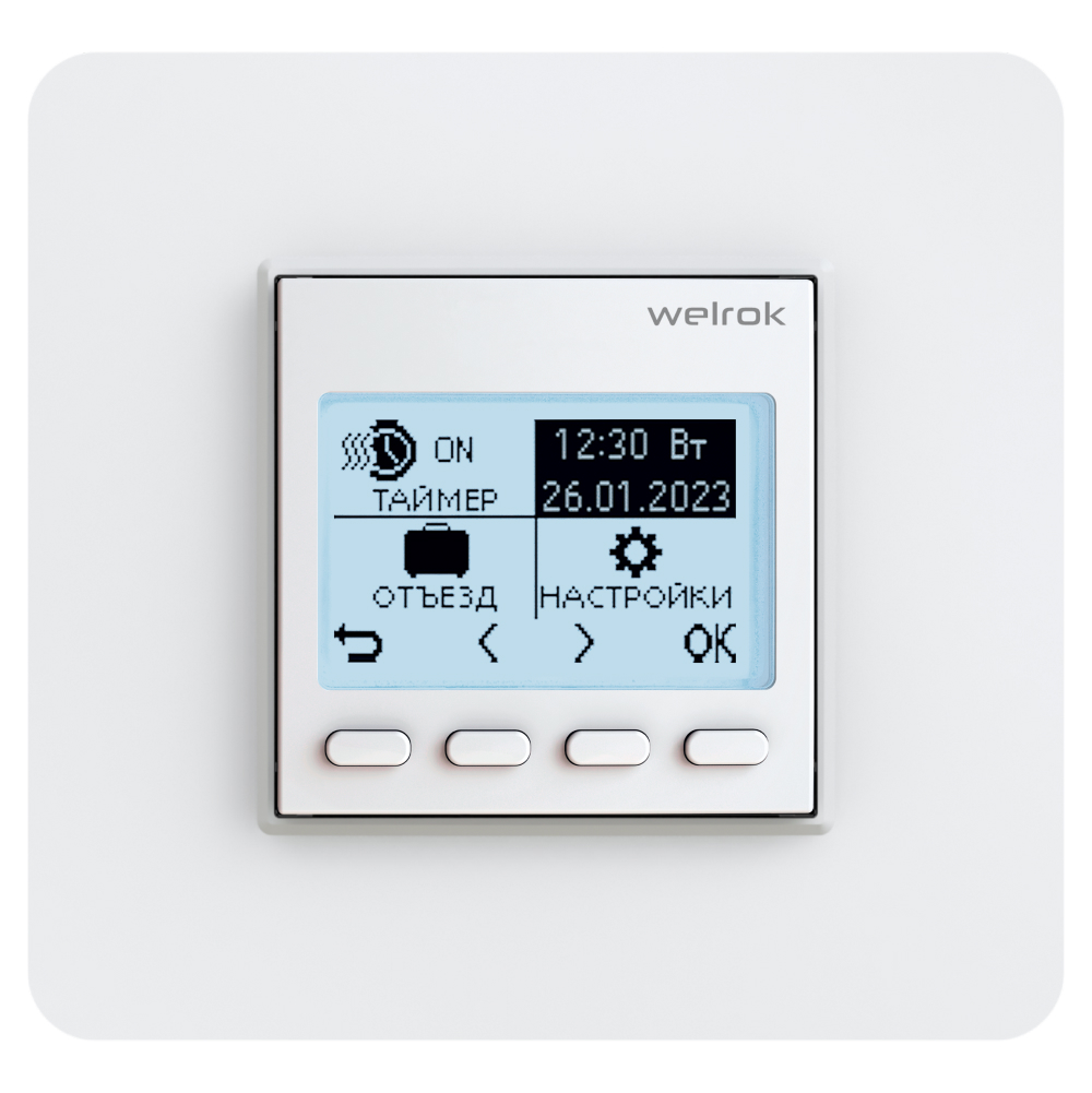 Широкое применениеWelrok pro - терморегулятор с возможностью программирования недельного графика обогрева. Вы можете установить до 16 интервалов для каждого дня недели. В праздничные дни при желании можно установить индивидуальное расписание. Список праздничных дней можно выбрать из готового шаблона или создать индивидуальный.