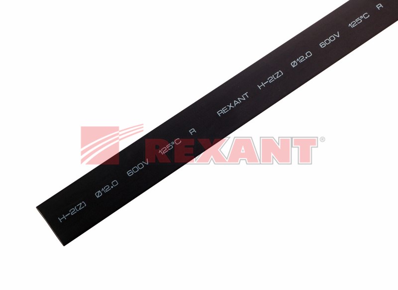 Термоусадочная трубка 12/6 черная ТУТнг (1м) REXANT /50