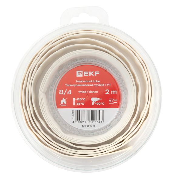 Термоусаживаемая трубка ТУТ нг 8/4 белая ролик 2 м EKF 1/220