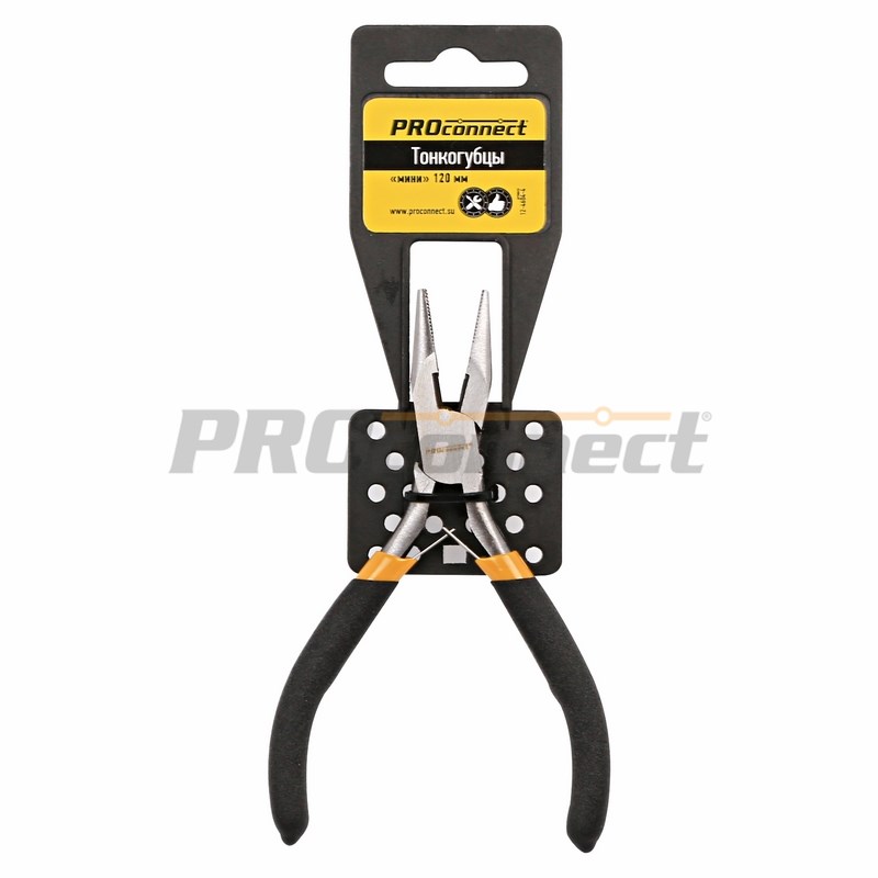 Тонкогубцы тип "мини" 120 мм арт. 12-4604-4 торговой марки PROconnect предназначены для проведения точныx работ, а также для монтажа слаботочныx цепей.Подxодят как для профессиональныx работ, так и для бытового применения.