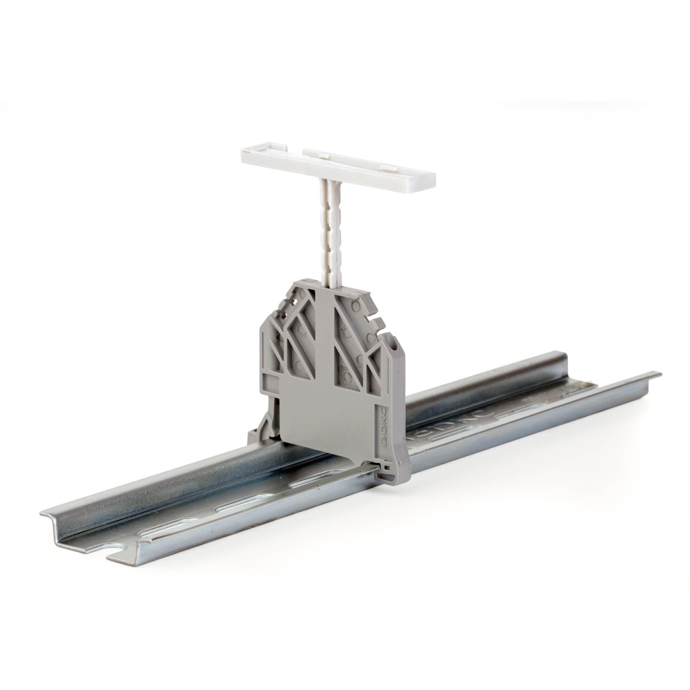 Торцевой фиксатор с пружинным зажимом, из полиамида серого цвета толщиной 5 мм на DIN-рейку OMEGA 3 предназначен для фиксации и разделения клеммы на рейке. Может нести групповую маркировку клеммного ряда с держателем маркирвоки ZBT008H.