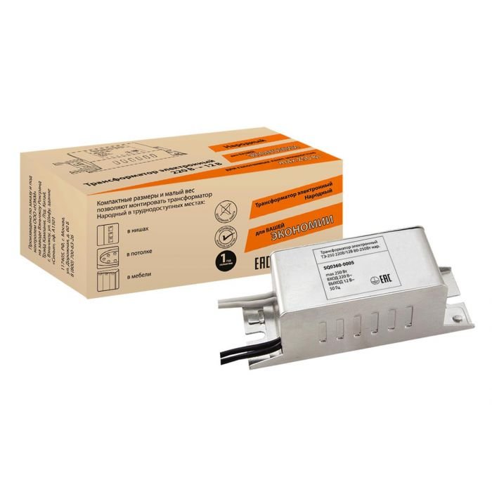 Применение:Обеспечение работы низковольтных галогенных ламп и ламп накаливания. Материалы:Корпус - металл.Преимущества:Компактные габаритные размеры.Металлический корпус обеспечивает равномерное отведение тепла, что исключает перегрев трансформатора.На корпусе предусмотрены отверстия для крепления трансформатора к поверхности. Назначение:Для преобразования напряжения 230В в напряжение 12В. 0: