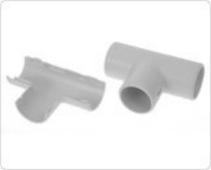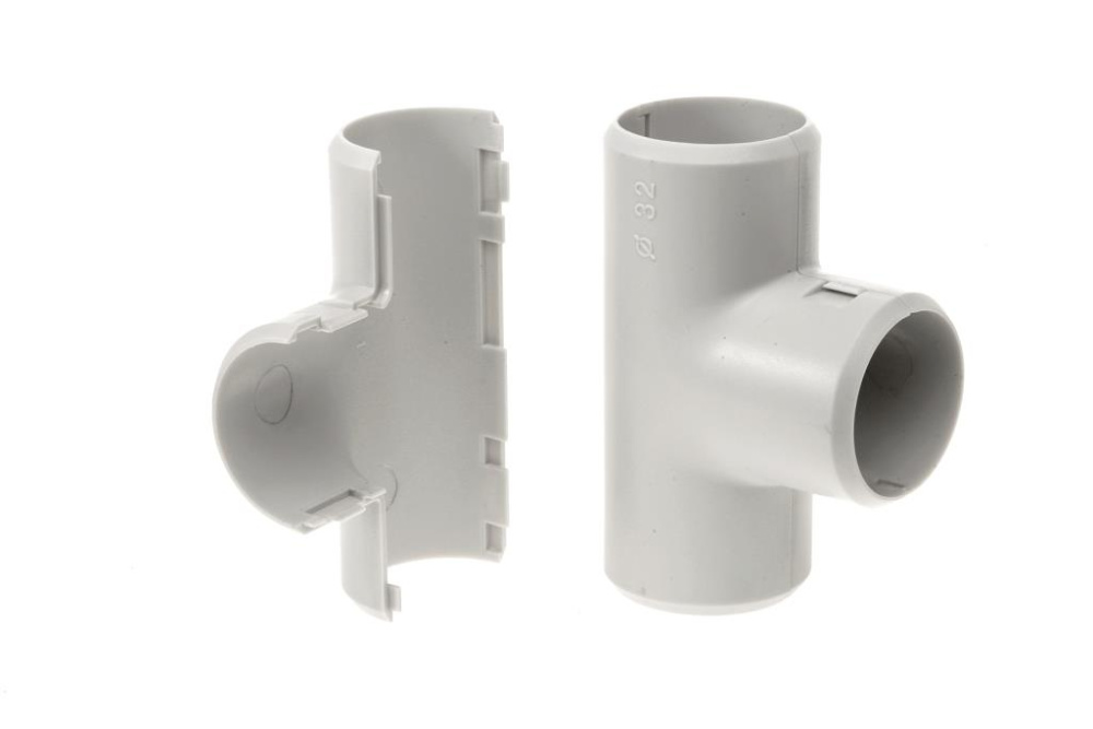 Предназначен для соединения гофрированных труб или гладких труб из пластика, образуя Т-образное ответвление, что позволяет придать более эстетичный внешний вид местам соединения. Состоит из двух частей соединяющихся друг с другом. Благодаря разъёмному корпусу, имеет возможность установки на уже смонтированную трассу.