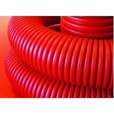 Гибкая двустенная труба из полиэтилена низкого давления предназначена для защиты кабелей низкого и среднего напряжения от механических повреждений и агрессивного воздействия окружающей среды. Труба имеет высокую кольцевую жесткость и устойчива к механическим воздействиям. Красный цвет изделия способствует быстрой идентификации и соответствует отраслевым стандартам. Труба поставляется в удобной бухте длиной 100 метров, что упрощает транспортировку и монтаж, каждая бухта комплектуется одной соединительной муфтой. Допускаются только скрытые виды монтажа (в грунте или при монолитном бетоностроении).