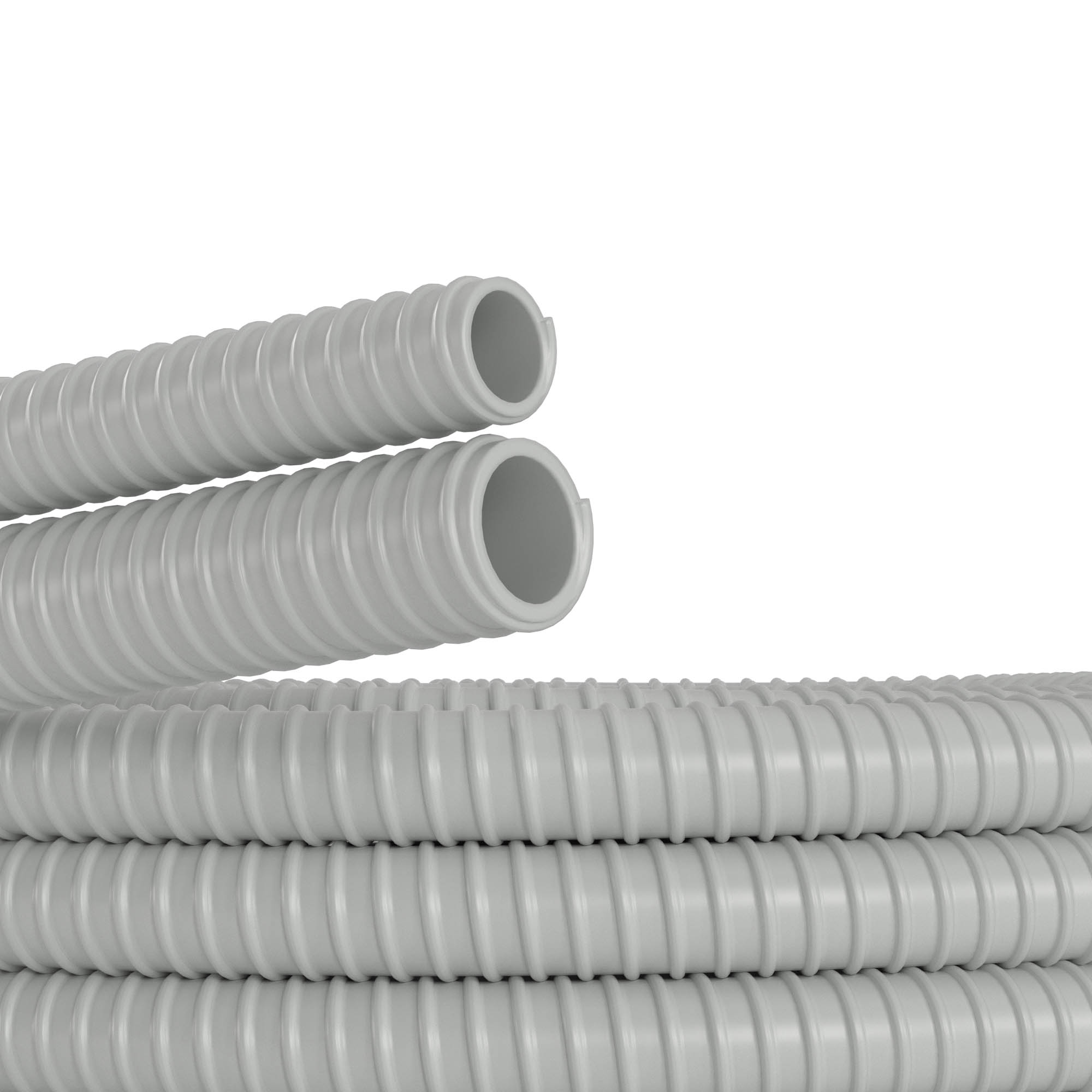 Труба гибкая армированная из ПВХ для прокладки цепей питания и управления к производственному, технологическому оборудованию, механизмам и машинам. Предназначена для прокладки сетей, подвергающихся продолжительным вибрационным воздействиям в ходе эксплуатации, монтажа слаботочных и силовых сетей на участках любой сложности. Внутренний диаметр трубы – 20 мм. Цвет: серый, RAL 7035. Температура монтажа: от +5°С до +60 °С. Температура эксплуатации: от -25°С до +60 °С. Длина в бухте – 30 метров