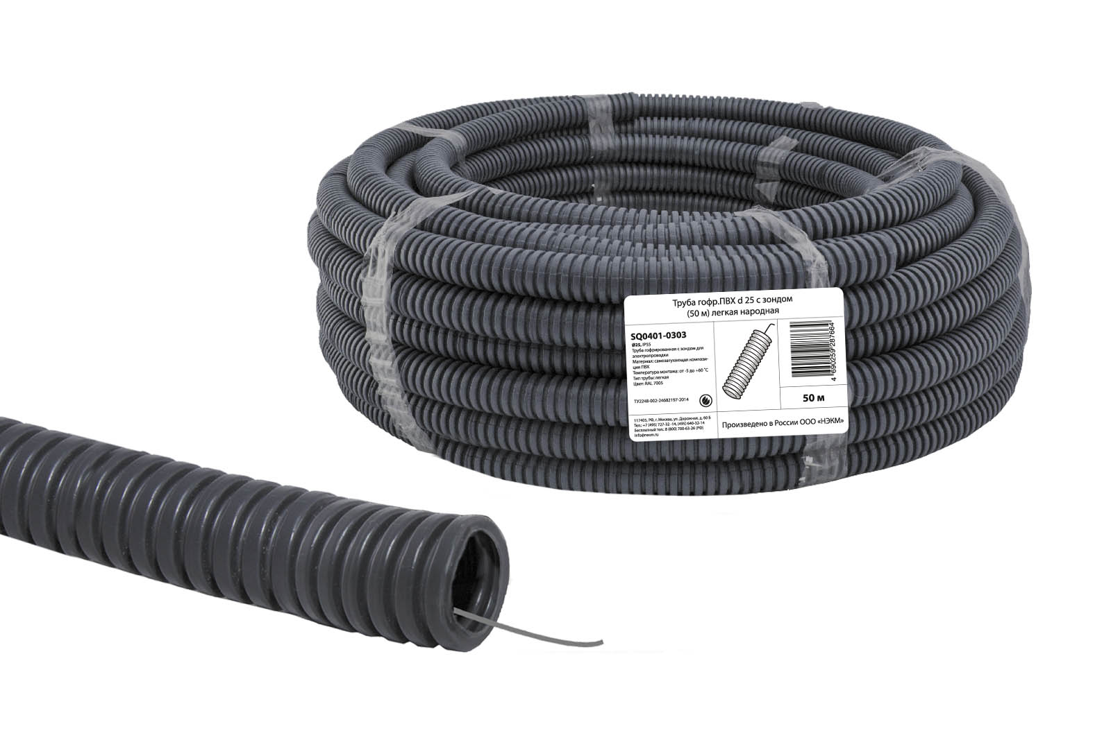 Труба гофрированная ПВХ d 25 с зондом легкая черный народная TDM /50