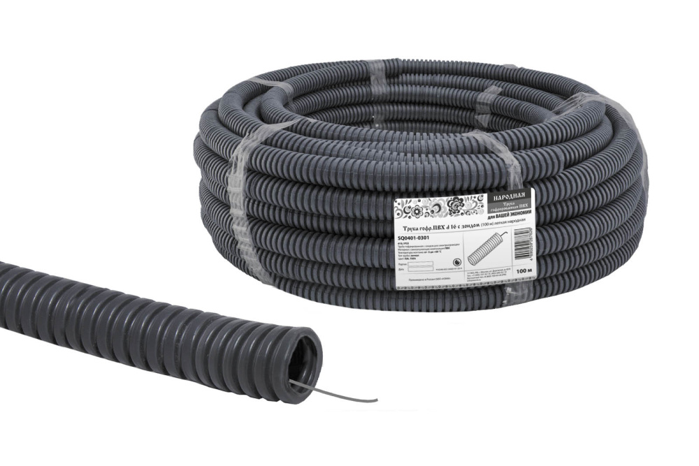Применение:Предназначены для наружной установки в производственных и складских помещениях.Использование гофротрубы исключает возникновение возгорания при коротком замыкании и распространение пламени по трубе.Дополнительная изоляция и защита провода от механических повреждений. Материалы:Самозатухающий ПВХПротяжка стальная проволока класса 2 диаметром 0,9 мм.Преимущества:Экономия трудозатрат и времени монтажа. Наличие зонда обеспечивает удобство протяжки кабеля и провода. Назначение:Предназначен для прокладки электрических, телефонных и телевизионных проводов, а также кабелей в бетонных стенах, за гипрокартоном, фальшь-полах, потолках, 0: