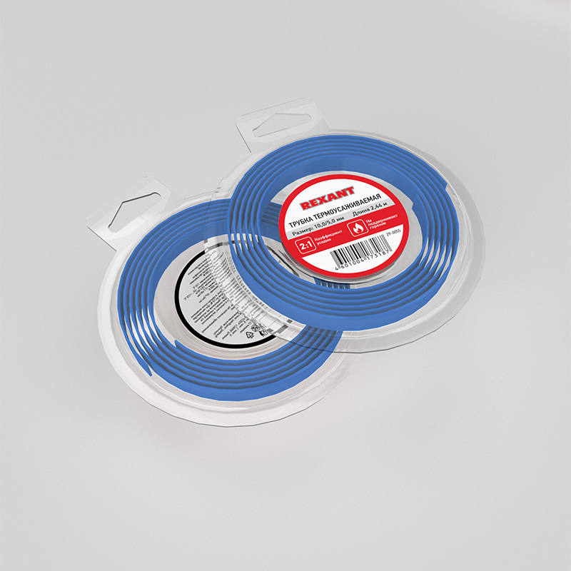 Трубка термоусадочная 2.44м (2:1) 10/5мм синяя REXANT