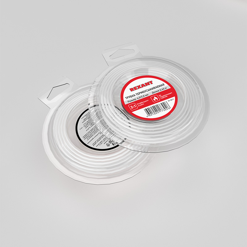 Трубка термоусадочная 2.44м (2:1) 4/2мм белая REXANT