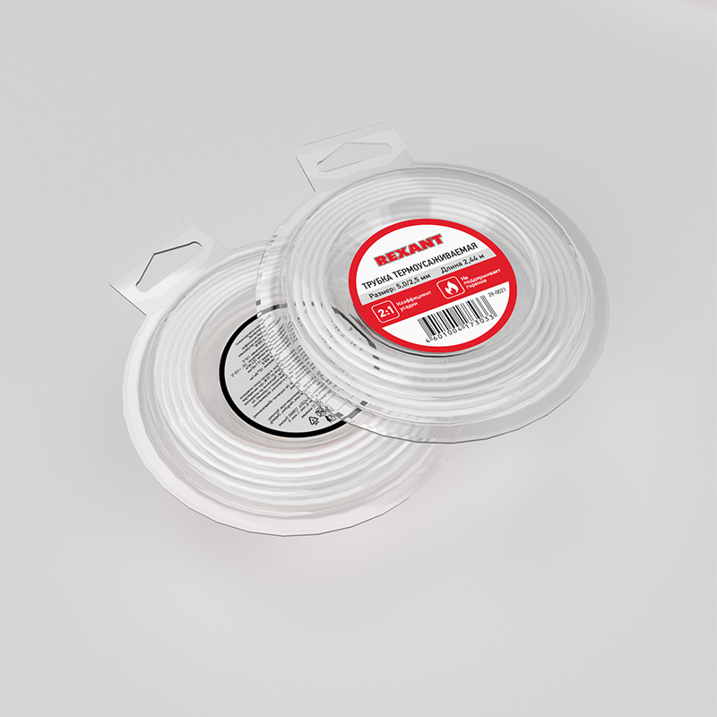 Трубка термоусадочная 2.44м (2:1) 5/2.5мм белая REXANT