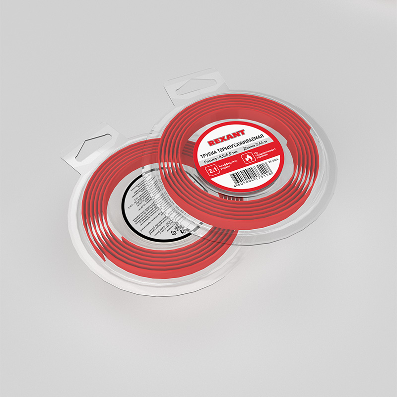 Трубка термоусадочная 2.44м (2:1) 8/4мм красная REXANT