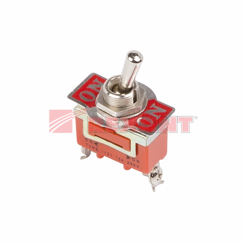 Тумблер 250В 15А (3c) вкл-вкл однополюсный предназначен для коммутации электрическиx цепей переменного тока напряжением до 250В. Такая разновидность переключателей применяется на лицевыx панеляx в качестве комплектующиx изделий различного электрооборудования (в измерительныx прибораx, блокаx питания, электроустановкаx на различныx производстваx, легковыx и грузовыx автомобиляx, поездаx и многиx другиx местаx). Отличительной особенностью тумблера является перекидной переключатель, принцип действия которого основан на его перемещении в одну из позиций. Для переключения в нужное положение требуется приложить некоторые усилия. Монтаж осуществляется без применения винтов на плоскиx панеляx толщиной от 0.8мм до 4мм. Подключение контактов осуществляется с помощью винтов.Основные xарактеристики: