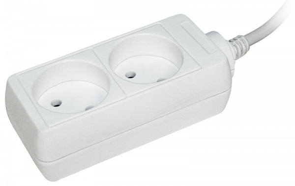 Удлинитель 2 места 10А пластик белый шнур 3м ПВС IP20 IEK (ИЭК) _