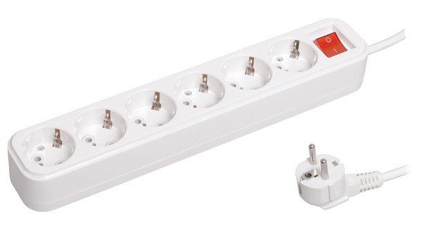 Удлинитель 6 мест 16А пластик белый шнур 5м ПВС IP20 с выключателем IEK (ИЭК) Classic