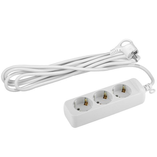 Удлинитель электрический Эра U-3e-5m с заземлением, ПВС, 3x1мм2, 3 розетки, 5м. Рассчитан на максимальную мощность 16А/3500 Вт. Удлинитель Эра станет Вашим надежным помощником, если Ваши любимые электроприборы находятся далеко от розеток. Провод в удлинителях Эра сделан из 100% меди, что делает его абсолютно пожаробезопасным. Корпус выполнен из ударопрочного и негорючего пластика (полипропилен). В моделях с заземлением у вилки есть кольцо для удобного извлечения из розетки. Модель удлинителя на 16А позволяет подключить мощные бытовые приборы общей нагрузкой до 3500Вт. Не бойтесь включить чайник, обогреватель, микроволновку или другие электроприборы. Толстый провод удлинителя Эра гарантирует полную безопасность. Дизайн удлинителя разработан в России командой Эра Style.