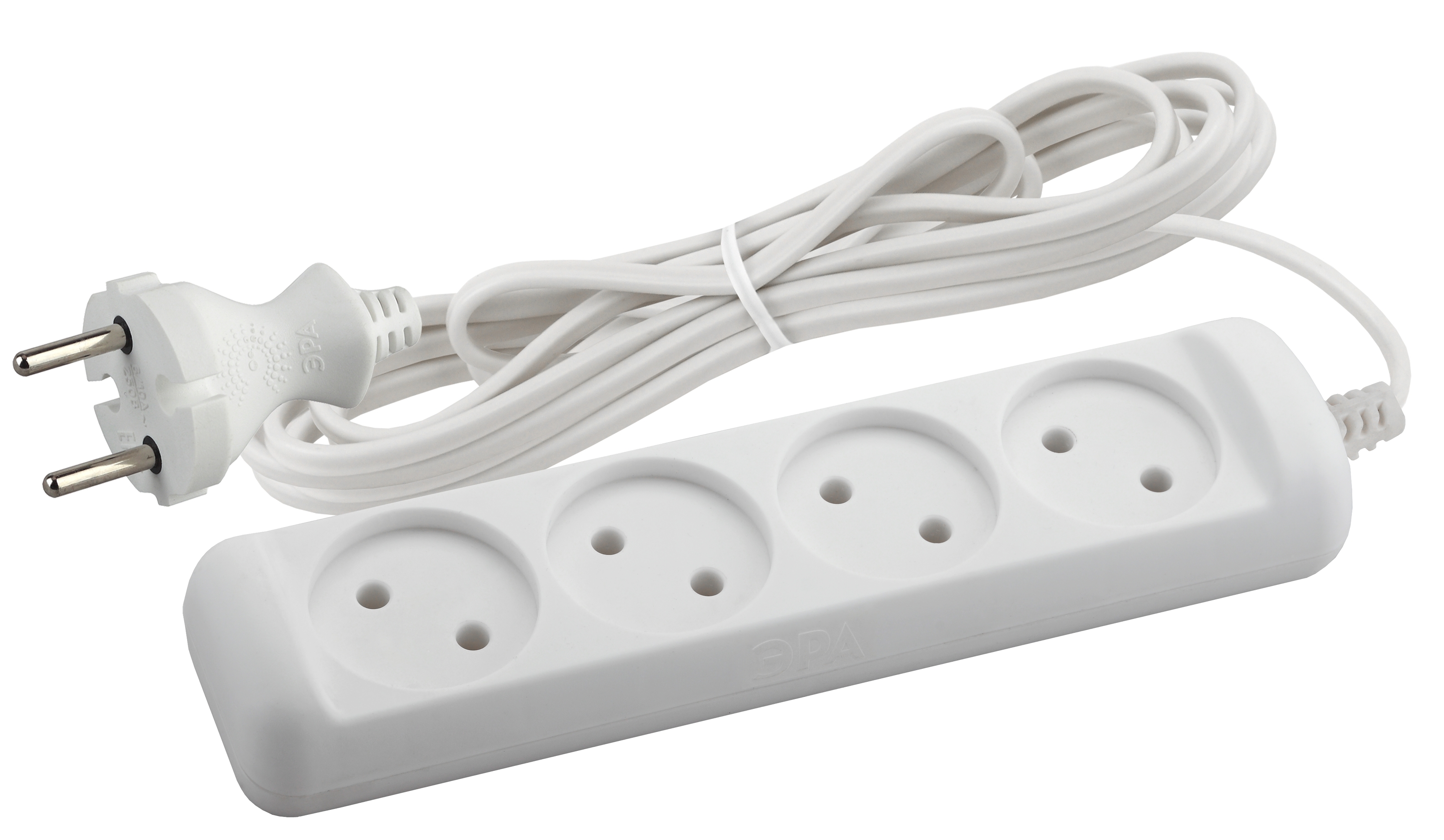 Удлинитель электрический ЭРА UX-4-3m, без заземления, 4 розетки. Серия UX. Для подключения маломощных устройств до 6 А/ 1300т. Провод ШВВП 2х0,75м2 длиной 3 м.