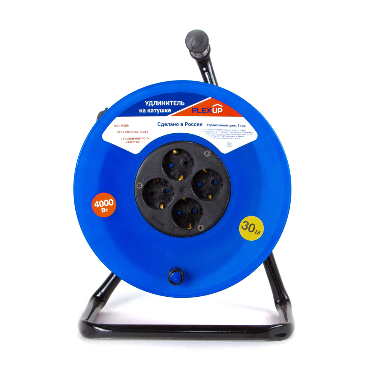 Удлинитель  на катушке ПВС 30м PLEXUP Артикул EUC41-40-20-30 Длина: 30м Тип кабеля:ПВС Сечение кабеля: 3х2,5мм2   Степень защиты:IP20 Номинальная сила тока:16А Макс нагрузка:4кВт Напряжение сети:220В