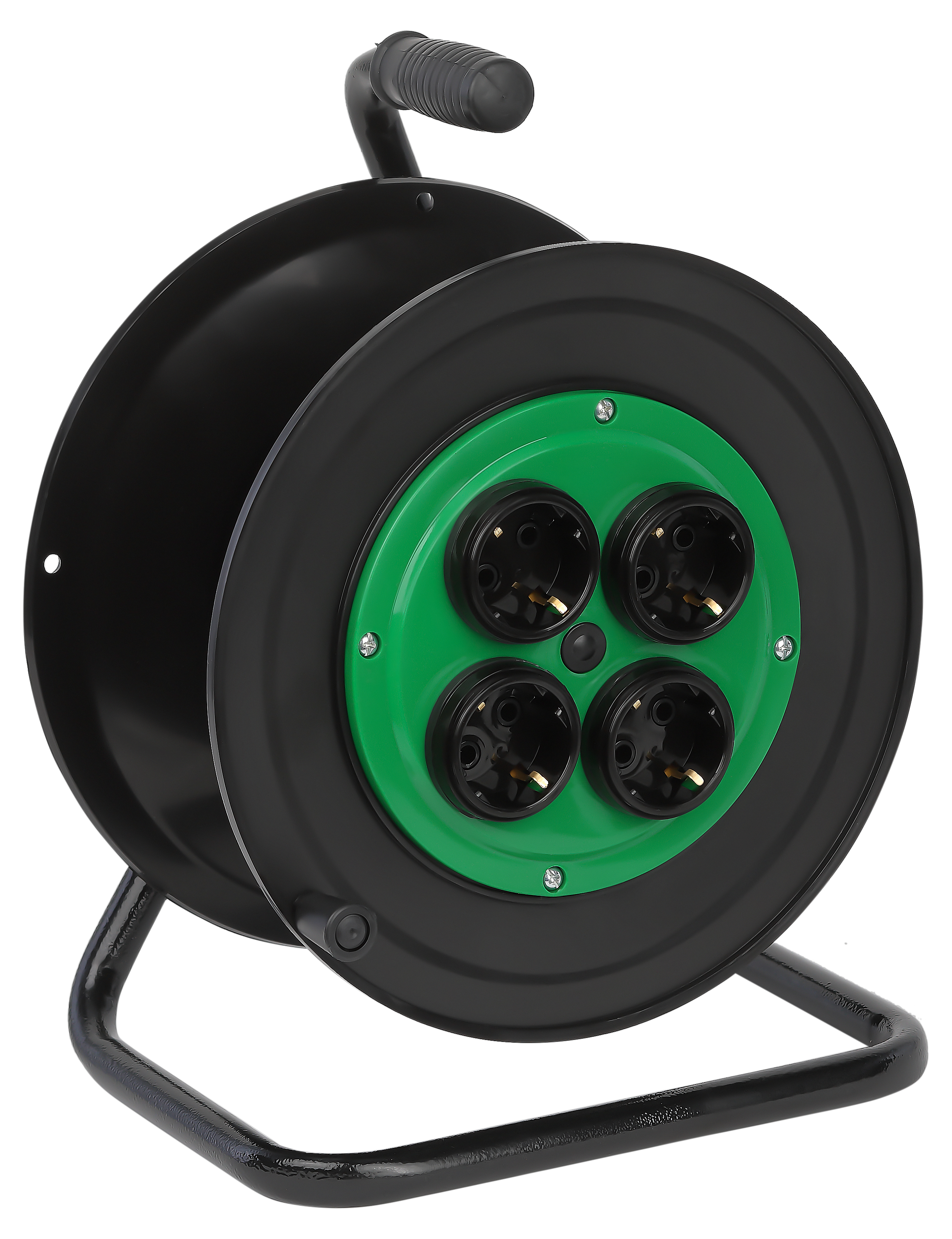 Катушка пластиковая для намотки кабеля. 4 гнезда. С заземлением. IP20