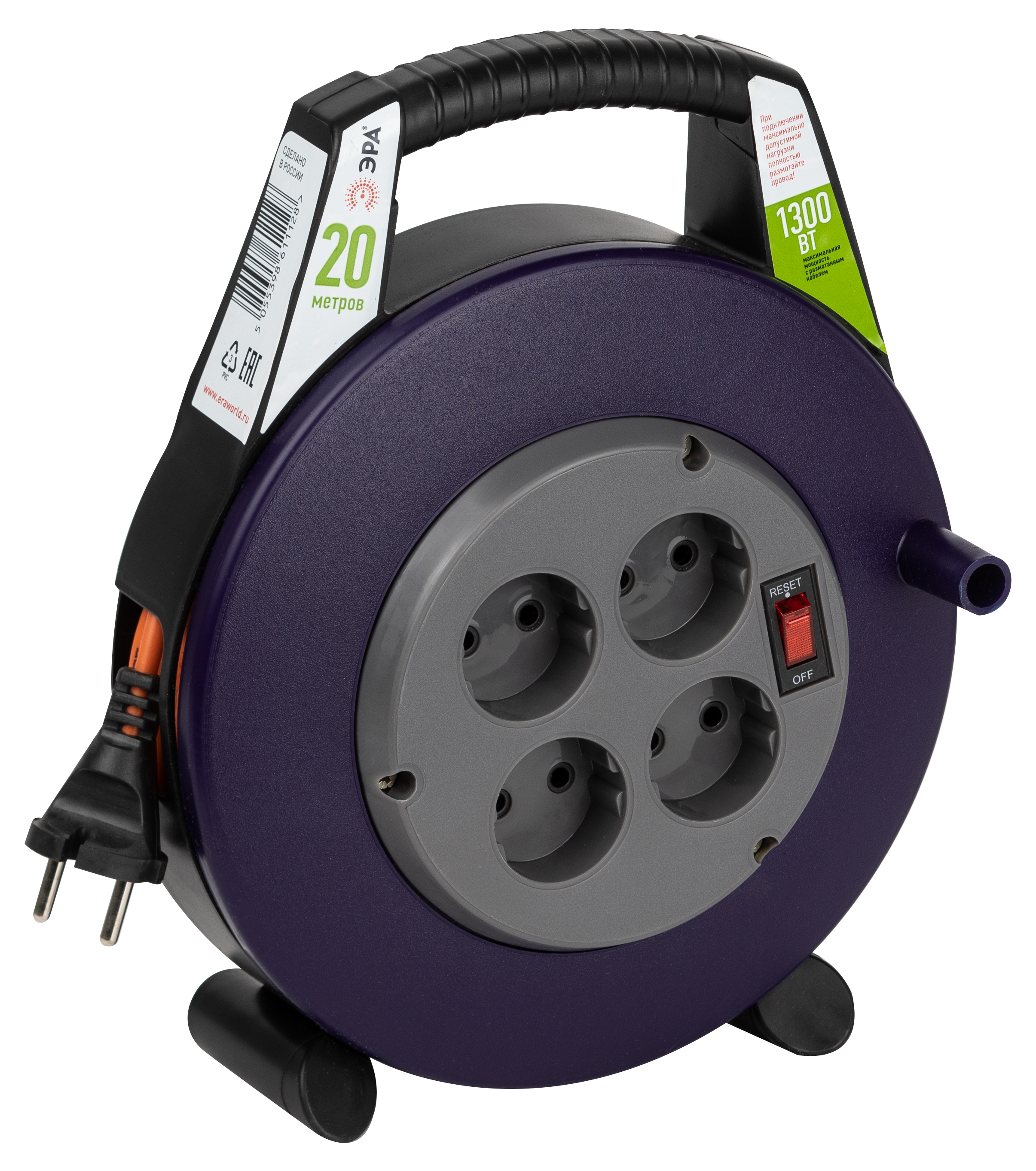 Силовой удлинитель ЭРА BPx-4-2x0,75-20m в закрытом корпусе без заземления, с выключателем, 4 розетки, 20м, ПВС 2x0,75мм2, 6А позволяет легко подключить удаленное на расстоянии от стационарной розетки электрооборудование суммарной мощностью до 1,3КВт. Закрытый корпус обеспечивает удобное и безопасное использование, а также хранение удлинителя. Удобная ручка позволяет легко передвигать удлинитель и устанавливать его в нужном для подключения месте.