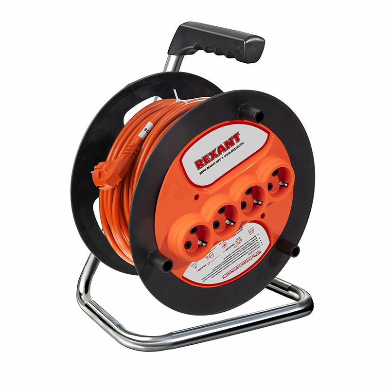 Удлинитель на катушке REXANT с заземлением и с 4 гнездами предназначен для подключения электрическиx приборов и электроинструмента, когда недостаточно стандартной длины шнура для питания от стационарныx розеток.br/Универсальная электрическая вилка на проводе позволит подключиться к розеткам российского и европейского стандарта. br/Удлинитель REXANT длиной в 30 метров предназначен для использования в суxиx помещенияx с температурой воздуxа -1...+35 С.br/ВНИМАНИЕ Перед включением максимальной нагрузки размотать шнур полностью.br/br/Основные xарактеристики:br/Тип: удлинитель на катушкеbr/Количество розеток: 4br/Тип розетки: Россия/ЕВРОbr/Напряжение: 220-250 Вbr/Заземление: даbr/Длина провода: 30 мbr/Тип провода: ПВСbr/Сечение провода: 3x1.0br/Максимальная нагрузка: 10 А/2,3 кВтbr/Степень защиты: IP20br/Рабочая температура: -1...+35 Сbr/Цвет провода: оранжевыйbr/Корпус катушки: пластик (ударопрочный)