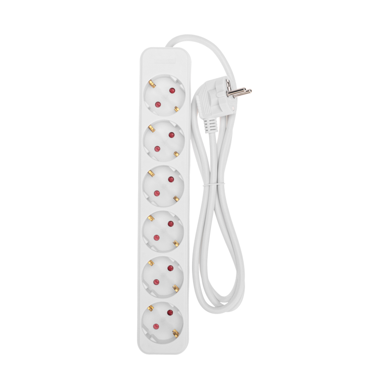 Наличие 6 гнезд позволяет одновременно подключить несколько электроприборов. Каждое гнездо имеет заземление, что гарантирует безопасность при использовании.