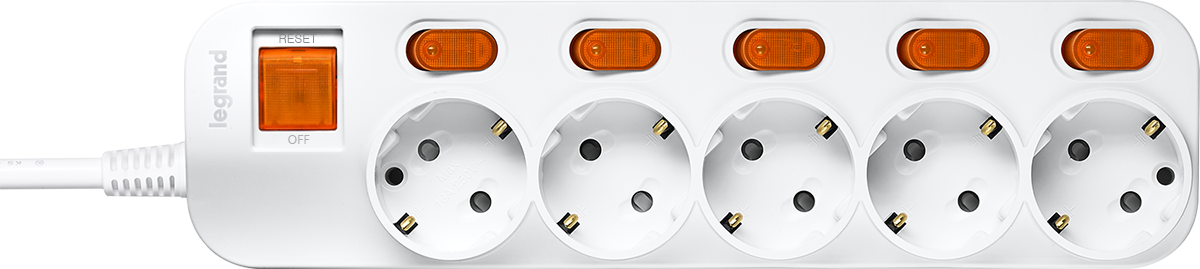 Удлинитель с выключателем+ индивидуальным выключателем 5гн 2,5м с/з16A 250V Anam Legrand e-Fren 5