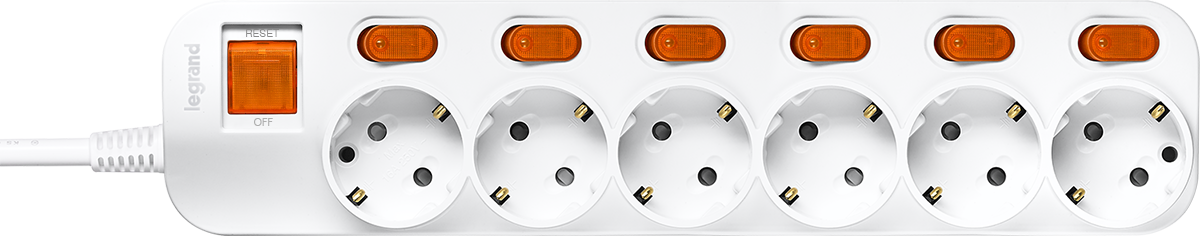 Удлинитель с выключателем+ индивидуальным выключателем 6гн 2,5м с/з 16A 250V Anam Legrand e-Fren 6