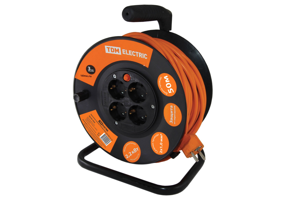 Удлинитель силовой на катушке 4гн 50м б/з ПВС 2х1 TDM УК10-004 /1