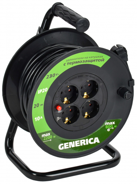 Удлинитель силовой на катушке 4гн.,50м б/з ПВС 2*1 2,2кВт "DOMTOK" 1/