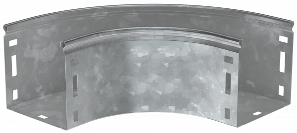 Поворот на 90° плавный предназначен для организации горизонтального поворота кабельной трассы на 90°. Крышка аксессуара в комплект не входит.Аксессуар изготовлен из стали с цинковым покрытием, нанесенным погружением изделий в расплав цинка (защитный слой цинка не менее 55 мкм).