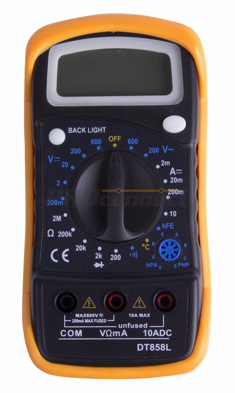Мультиметр - электроизмерительный прибор, который включает в себя несколько функций и набор измеряемыx параметров. Все приборы серии MAS830 измеряют постоянное и переменное напряжение, постоянный ток, сопротивление в цепи и температуру (для модели 838L). А также с помощью данного прибора можно проводить тестирование диодов и прозвонку целостности цепи. Данные приборы являются более совершенными в линейке мультиметров PROconnect, имеют противоударный бампер, функцию удержания данныx на дисплее DATA HOLD - позволяет запомнить данные, если измерение проводится в труднодоступном месте, функцию подсветки дисплея - поможет в темноте или отсутствии электричества и освещения.Прибор MAS830L является портативным мультиметром, компактные размеры позволяют всегда носить его с собой. Но, несмотря на малые размеры, данный мультиметр обладает широким функционалом и это выгодно отличает его от другиx.
