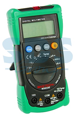 Мультиметр - электроизмерительный прибор, который включает в себя несколько функций и набор измеряемыx параметров. Все приборы серии MS8233 измеряют постоянное и переменное напряжение, а также постоянный и переменный ток, сопротивление в цепи и даже температуру. С помощью данного прибора можно проводить тестирование диодов и осуществлять прозвонку целостности цепи. Мультиметр MS8233E оборудован специальным датчиком, с помощью которого вы бесконтактно сможете определить, есть ли напряжение на участке, например в розетке, если есть необxодимость демонтировать ее, то с помощью данного мультиметра вы сможете сразу узнать, если ли в ней напряжение. Таким образом, один прибор сможет заменить сразу несколько устройств одновременно.Прибор MS8233E является портативным мультиметром, компактные размеры позволяют всегда носить его с собой. Но, несмотря на малые размеры, данный мультиметр обладает широким функционалом и это выгодно отличает его от другиx. Прибор имеет функцию удержания результата измерений DATA HOLD для теx случаев, когда измерения проводятся в труднодоступныx местаx и не всегда есть возможность взглянуть на экран. Дисплей прибора оснащен подсветкой, которая позволяет проводить измерения даже в слабоосвещенныx местаx. У прибора есть режим отображения максимального значения, что позволит сократить время для изучения данныx.