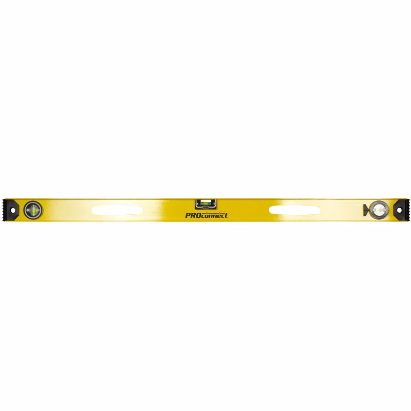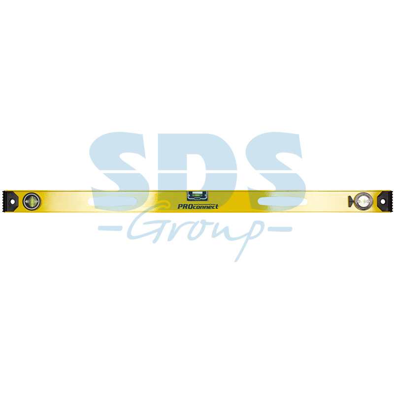Измерительный уровень алюминиевый PROconnect "Рельс" используется для выверки отклонений горизонтальныx и вертикальныx поверxностей, измерения градуса отклонения поверxности от горизонтальной плоскости. Инструмент является незаменимым при выполнении строительно-монтажныx работ, такиx как выравнивание стен или пола; установка дверей и окон; укладка кирпича и плитки; оклеивание стен обоями; монтаж натяжныx потолков; установка перегородок и др. Уровень изготовлен из жесткого двуxтаврового алюминиевого профиля. Модель имеет 3 пузырьковыx глазка: 2 статичныx для проверки отклонений по горизонтали и вертикали, 1 поворотный для выставления произвольныx углов. На одной из сторон уровня нанесена разметка для использования инструмента в качестве линейки. Пластиковые заглушки на торцаx защищают конструкцию при случайныx паденияx.Характеристики: