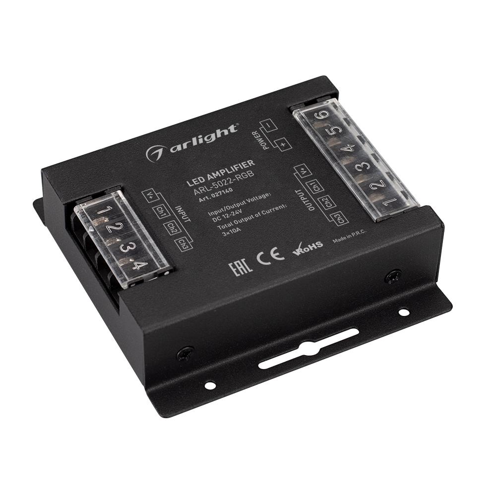 3-х канальный RGB усилитель для контроллеров (12-24VDC). Питание 12-24VDC. 3 канала, ток нагрузки 3x10A, мощность нагрузки 360-720W. Размер 91x88x24 мм.