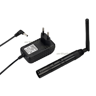 Беспроводной передатчик (усилитель) сигнала DMX512. Вход - сигнал DMX512, выход радиосигнал 2.4G. Разъем XLR3 Female, питание DC 5V (укомплектован адаптером). Максимальное расстояние между передатчиком и приёмником сигнала - 400 метров. Габариты 219x19x19 мм. Габариты адаптера с проводом 968x60x65 мм. Работает в паре с приемником сигнала 028417.