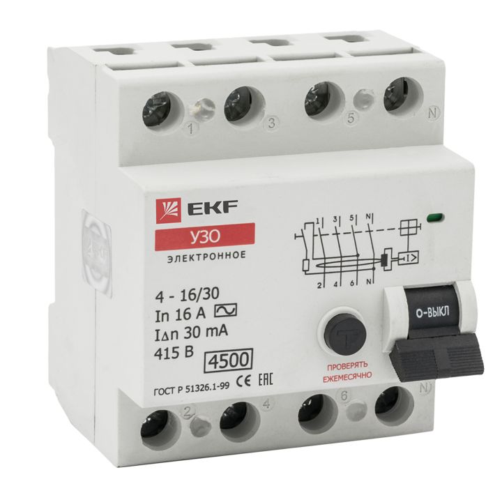 Устройство защитного отключения 4P 16А 30мА EKF /1