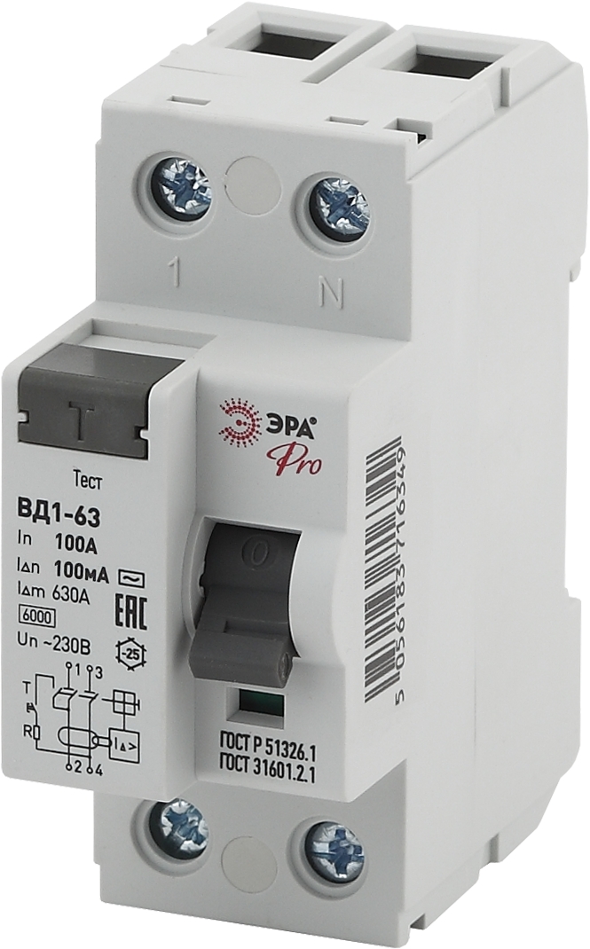 Устройство защитного отключения (УЗО) 2p 100А 100мА AC 6кА ЭРА _