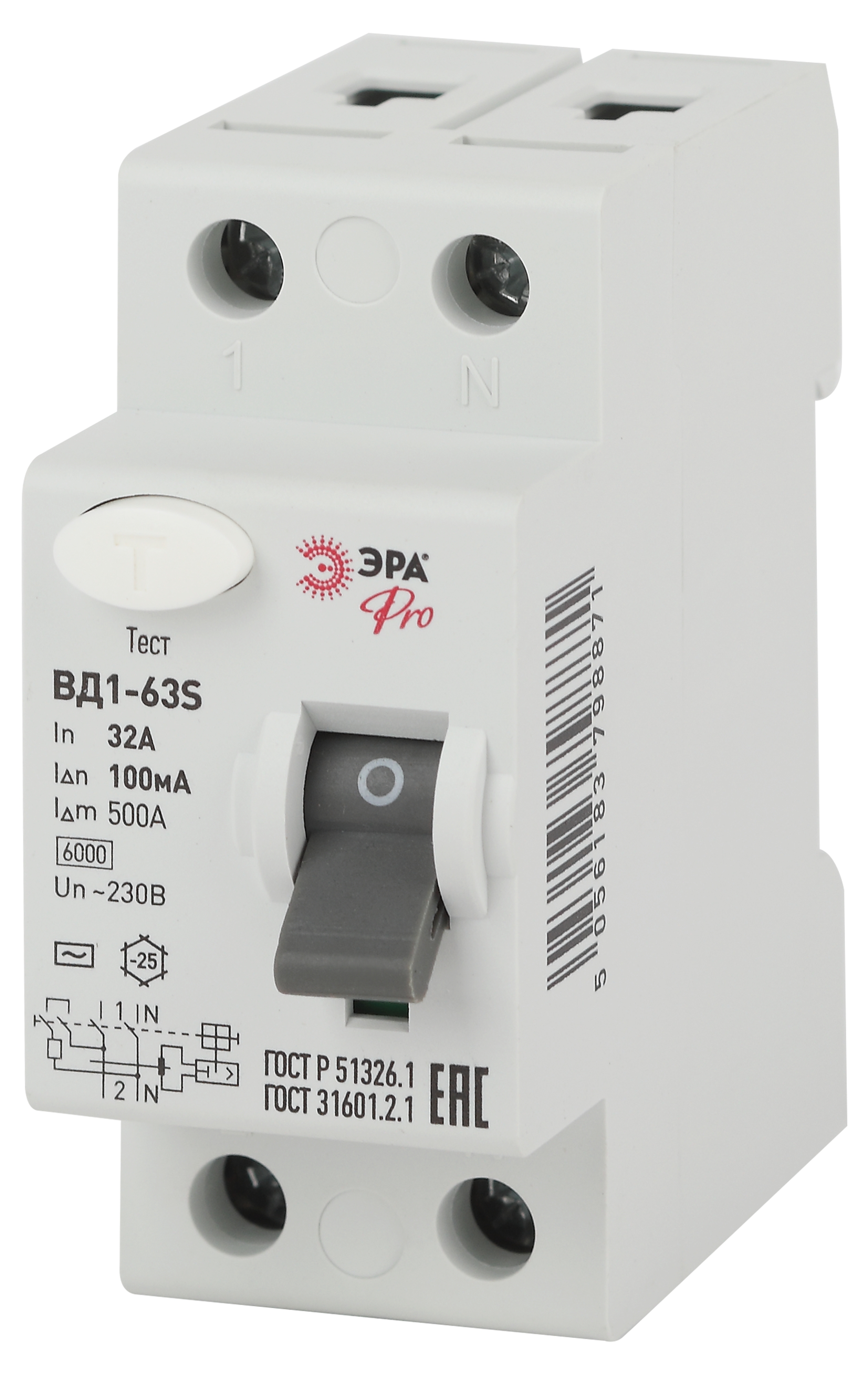 Устройство защитного отключения (УЗО) 2p 32А 100мА AC 6кА с селективной защитой ЭРА _